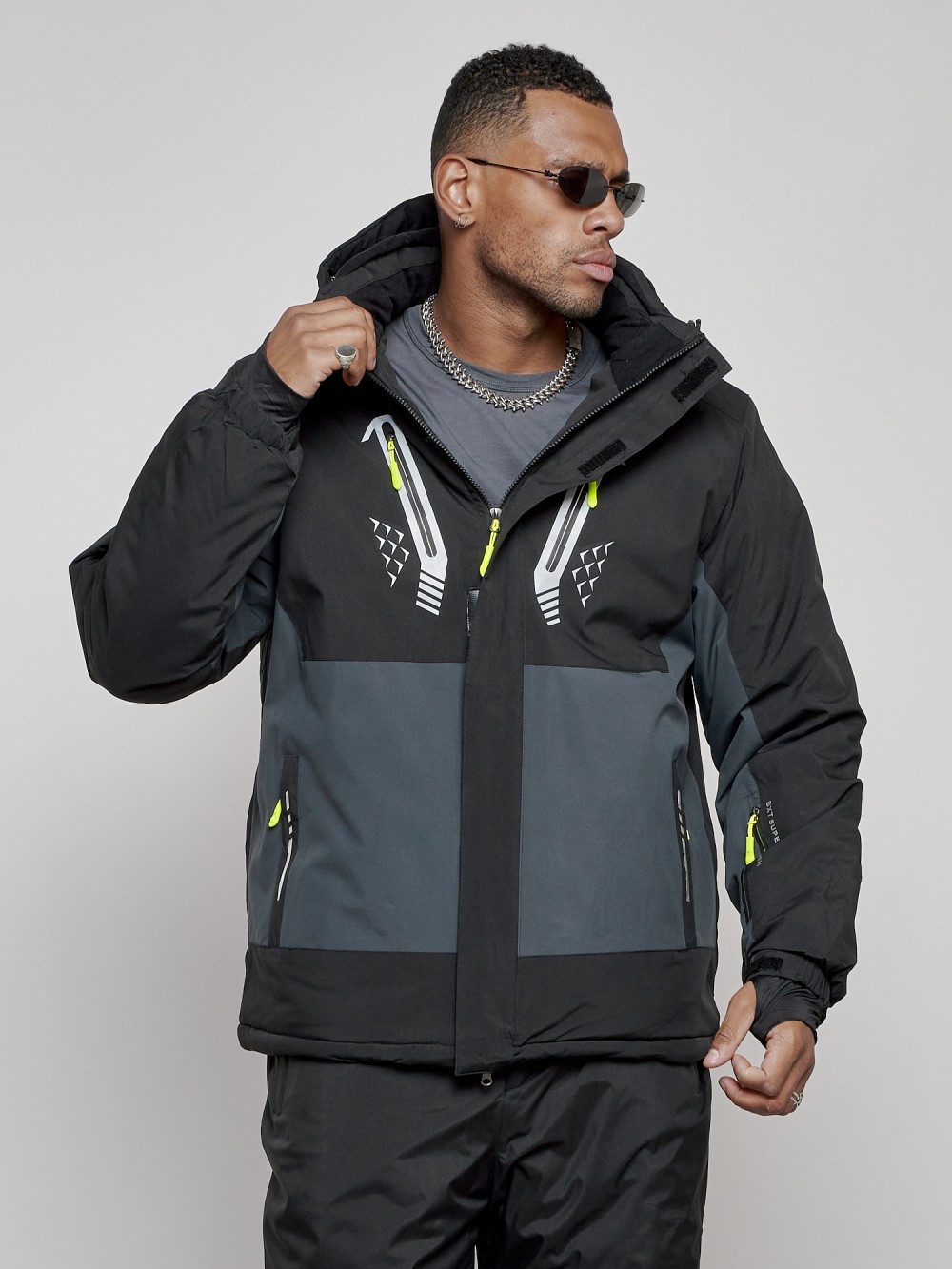Горнолыжная куртка мужская УЦЕНКА черного цвета 0816Ch