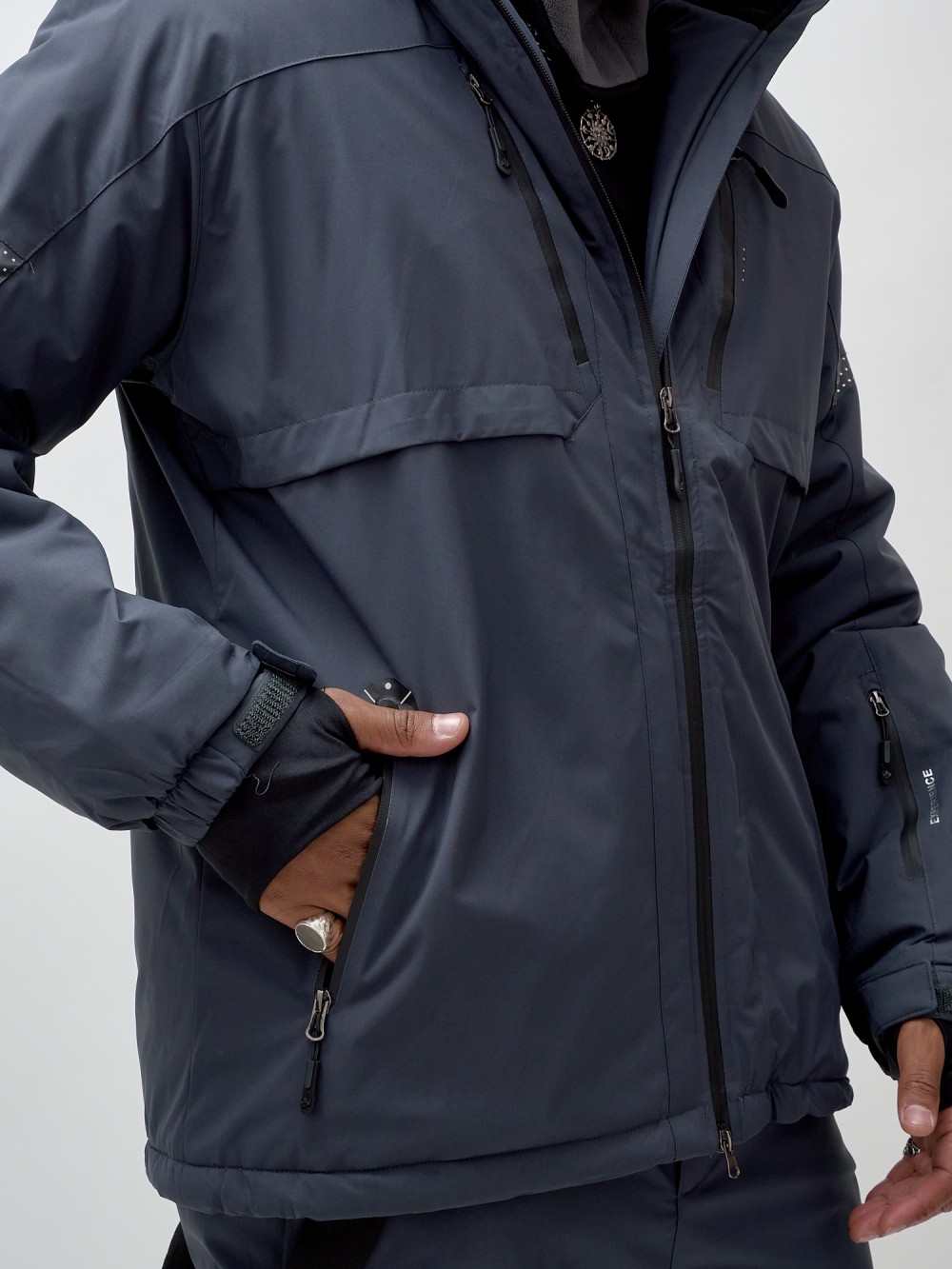 Горнолыжная куртка мужская УЦЕНКА темно-серого цвета 0915TC