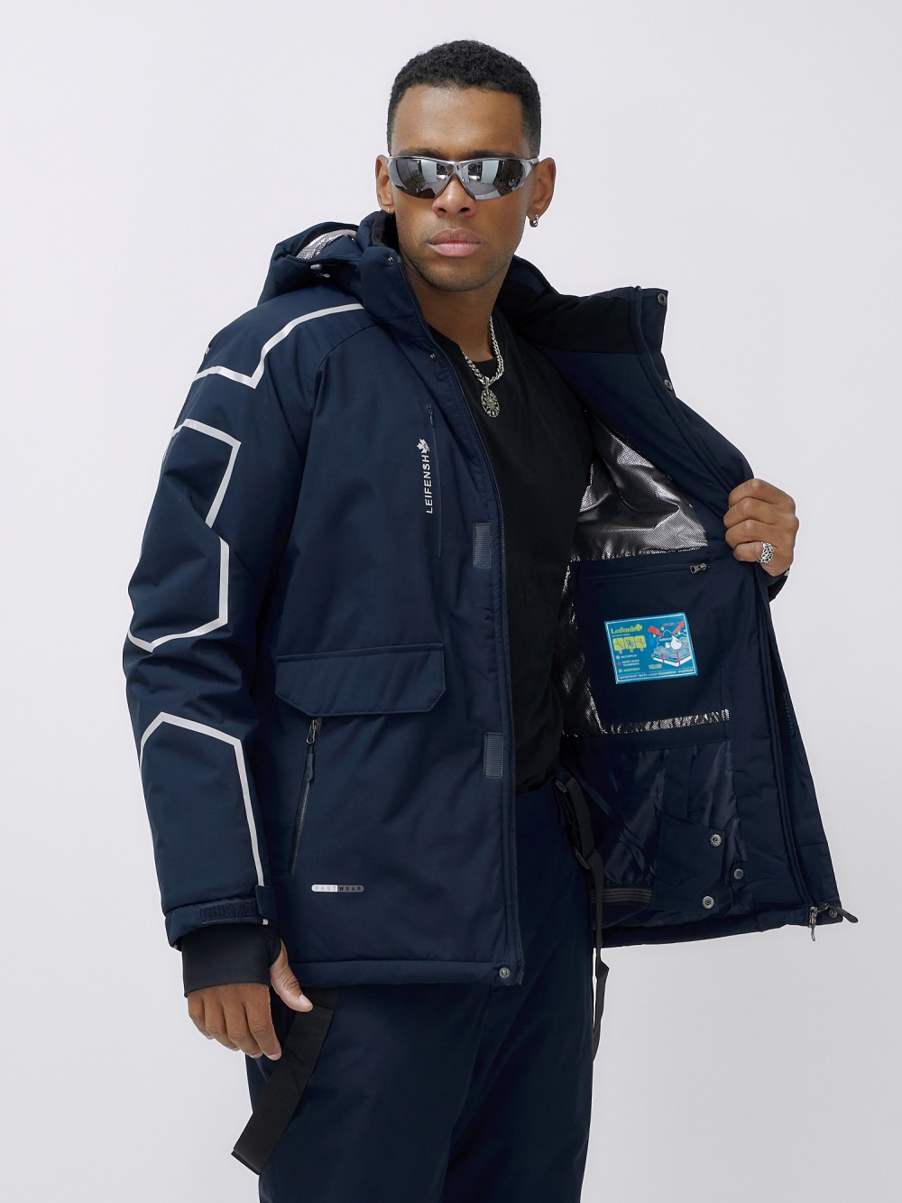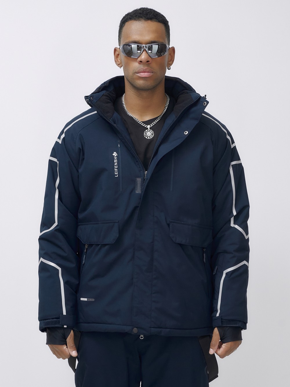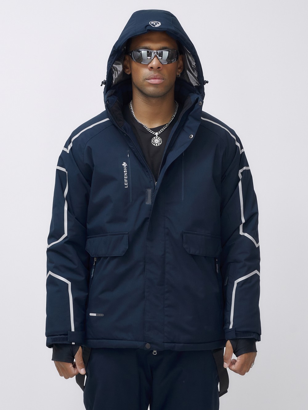 Горнолыжная куртка мужская УЦЕНКА темно-синего цвета 0916TS