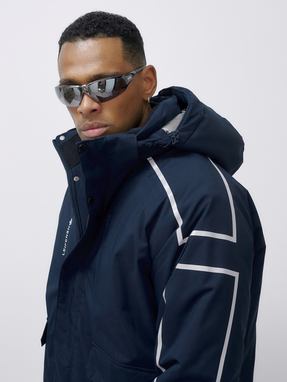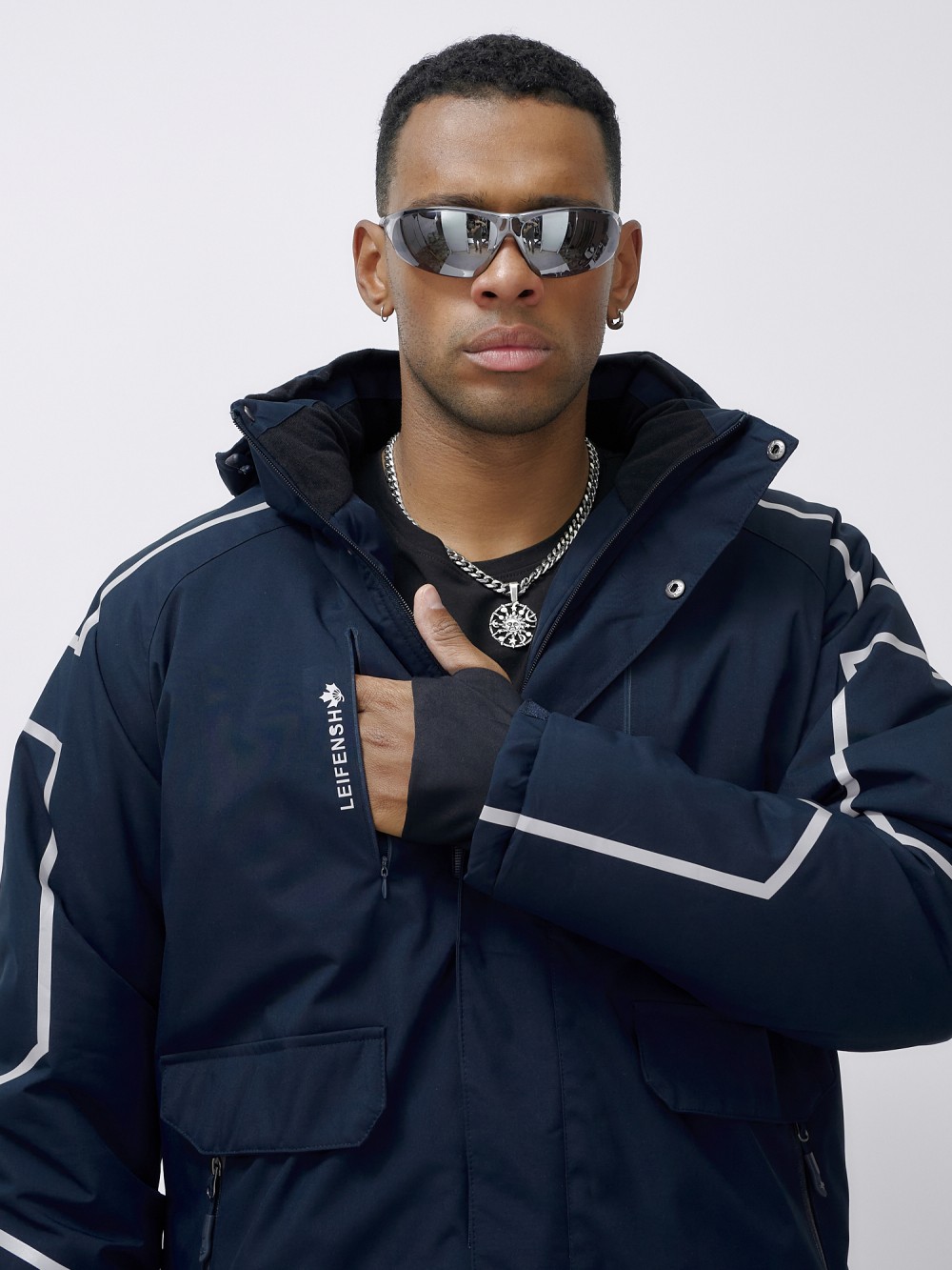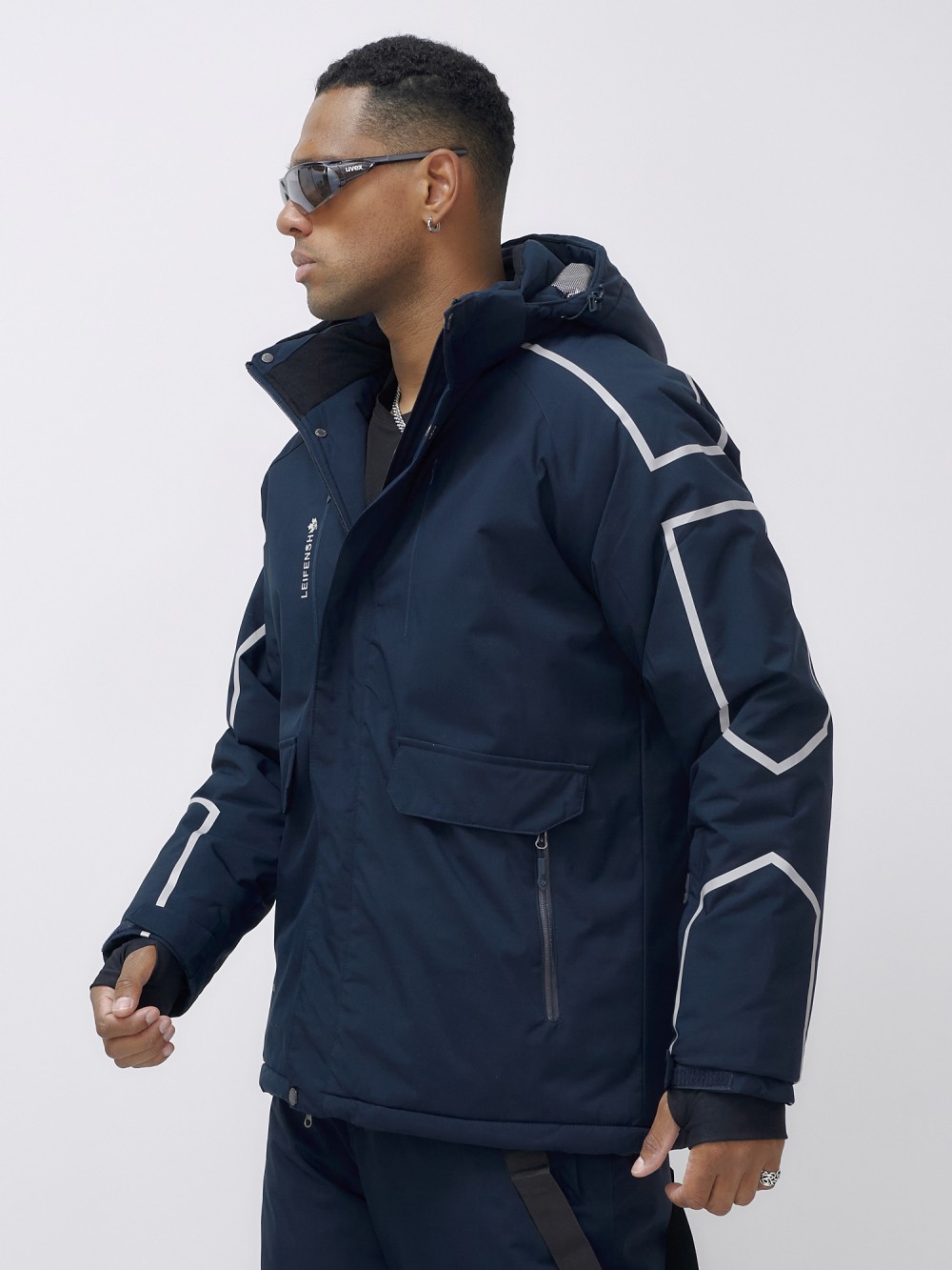 Горнолыжная куртка мужская УЦЕНКА темно-синего цвета 0916TS