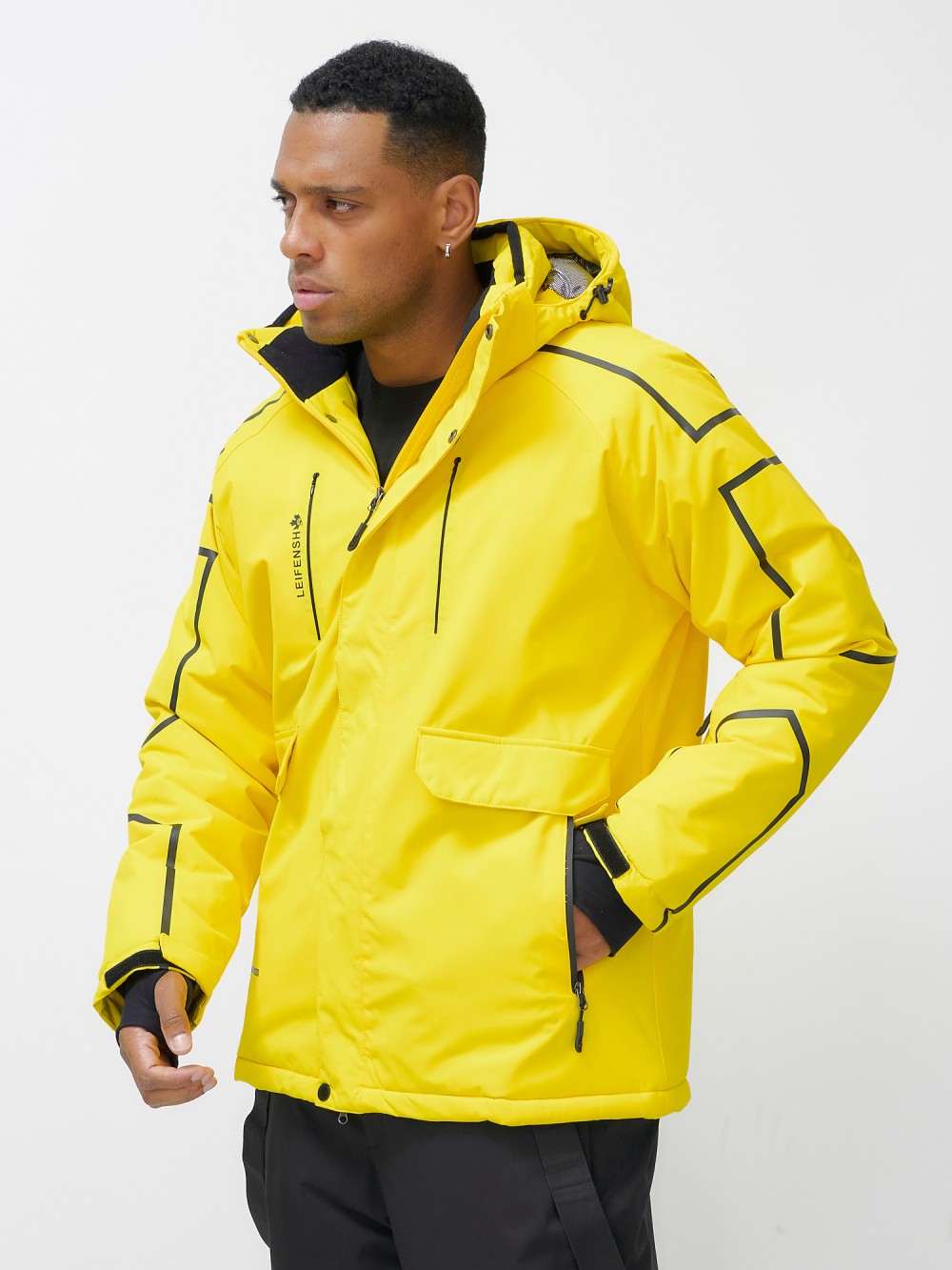 - Вырез для пальца, Капюшон, Карманы, Светоотражающие элементы