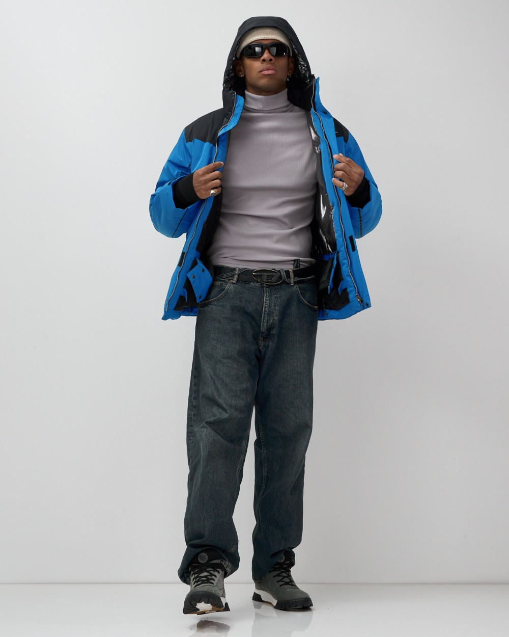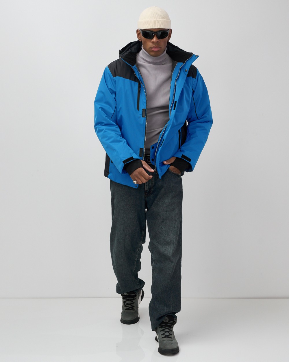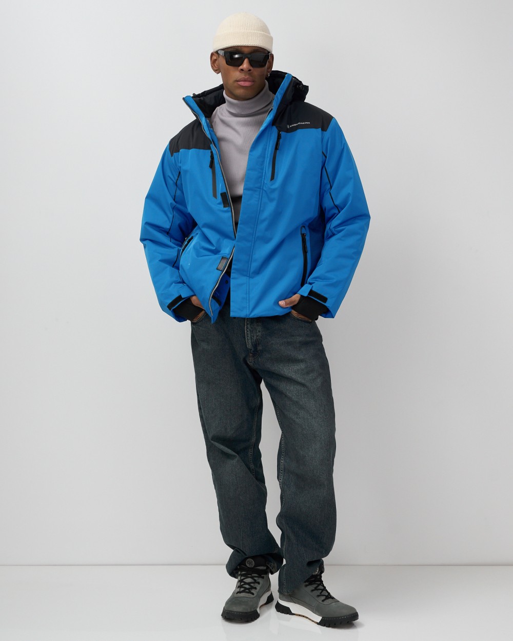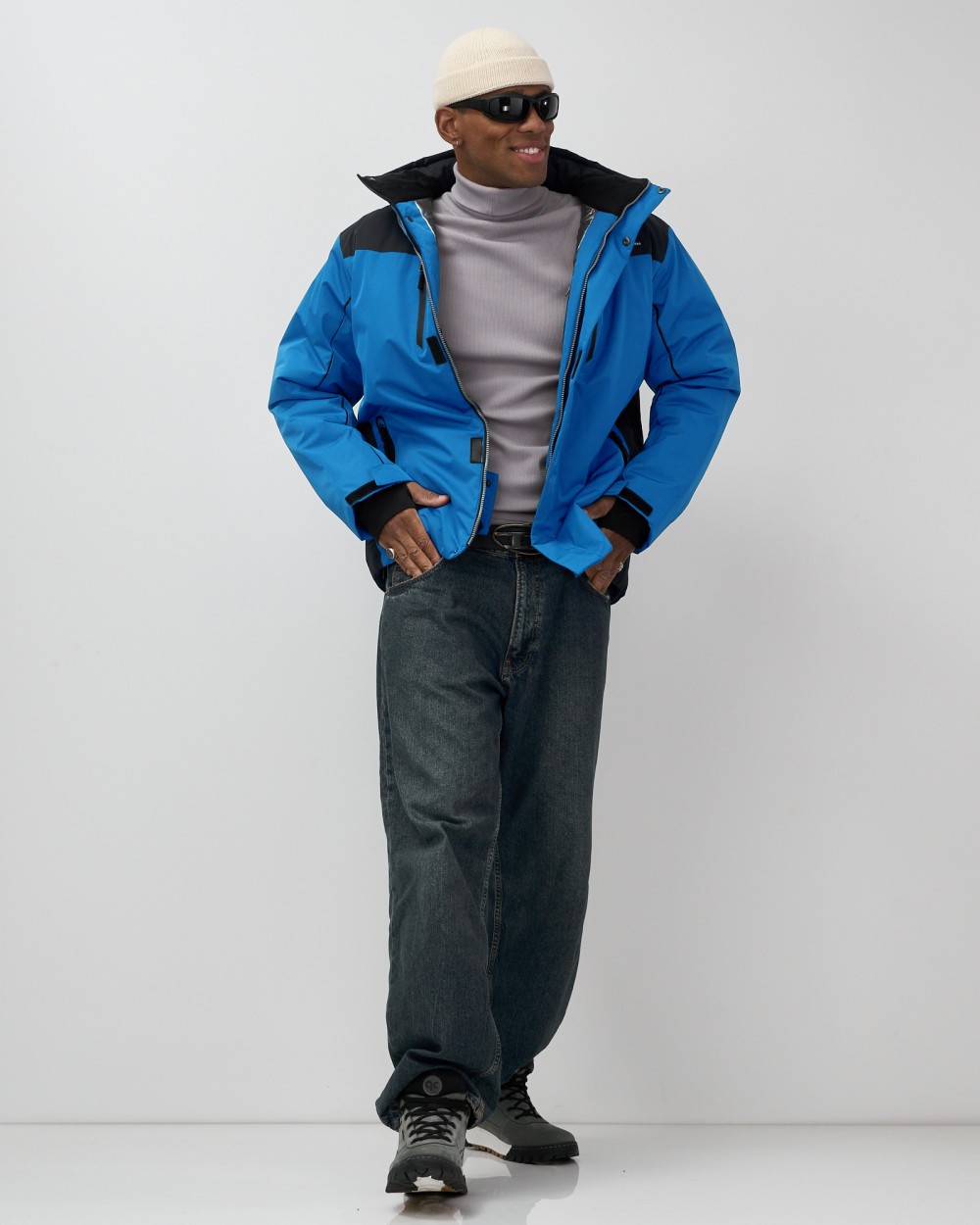 Горнолыжная куртка мужская зимняя голубого цвета 7611Gl