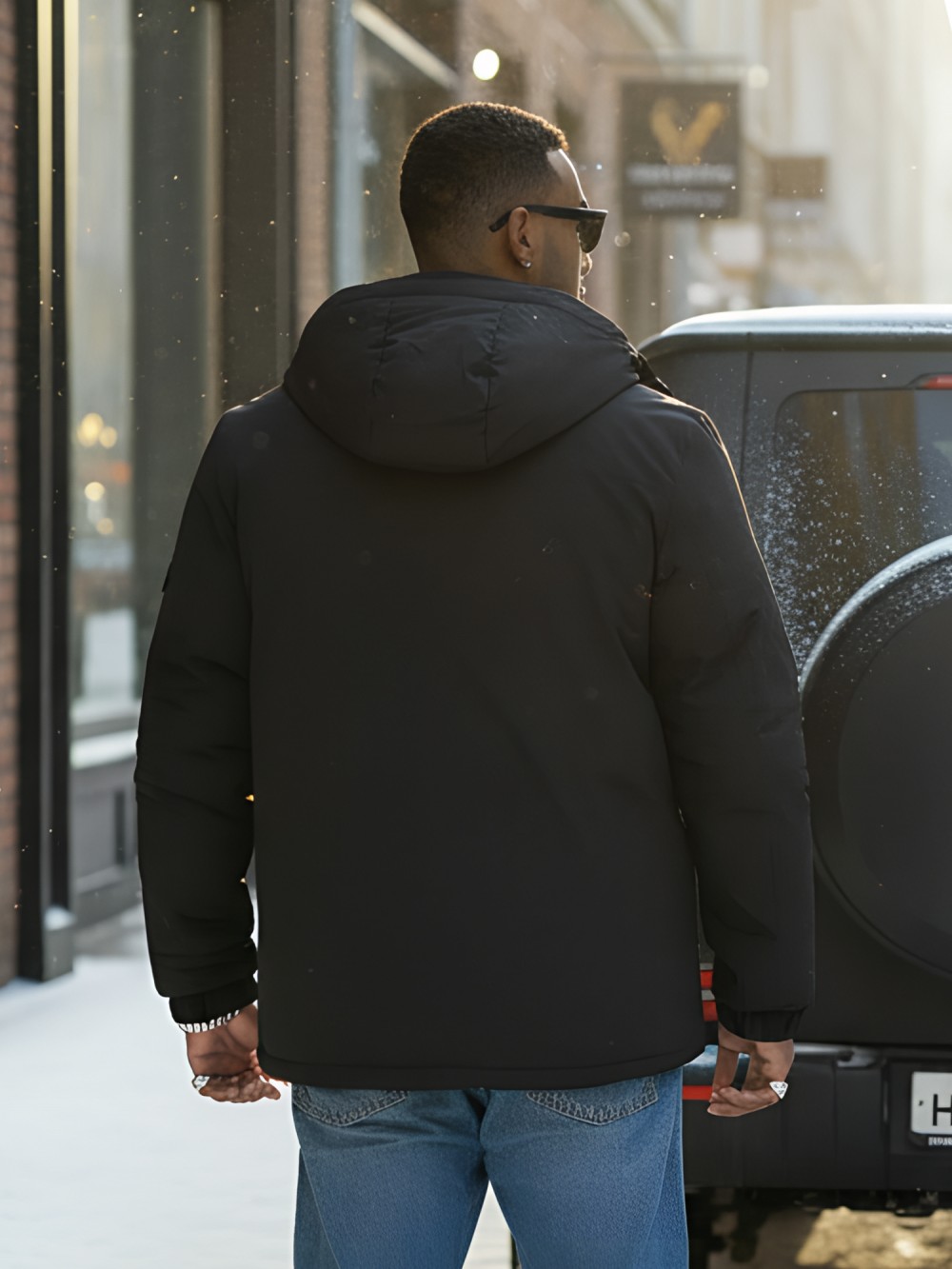 Капюшон надежно защищает от различных внешних факторов, таких как ветер.
