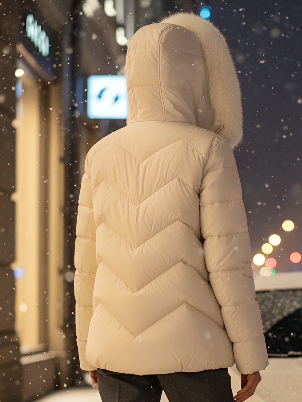 Утеплитель плотностью 200 г/м² обеспечивает комфорт при температурах от +5° до -20°C. Роскошный натуральный мех песца обрамляет лицо, создавая неповторимый образ городской леди. Безупречный крой подчеркивает силуэт, оставляя свободу движений.