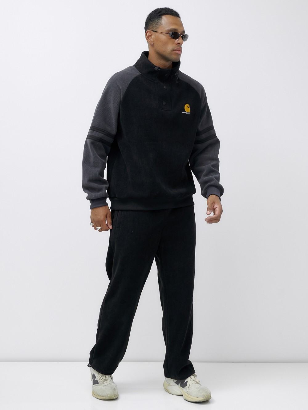Олимпийка мужская демисезонная на флисе УЦЕНКА черного цвета 0893Ch