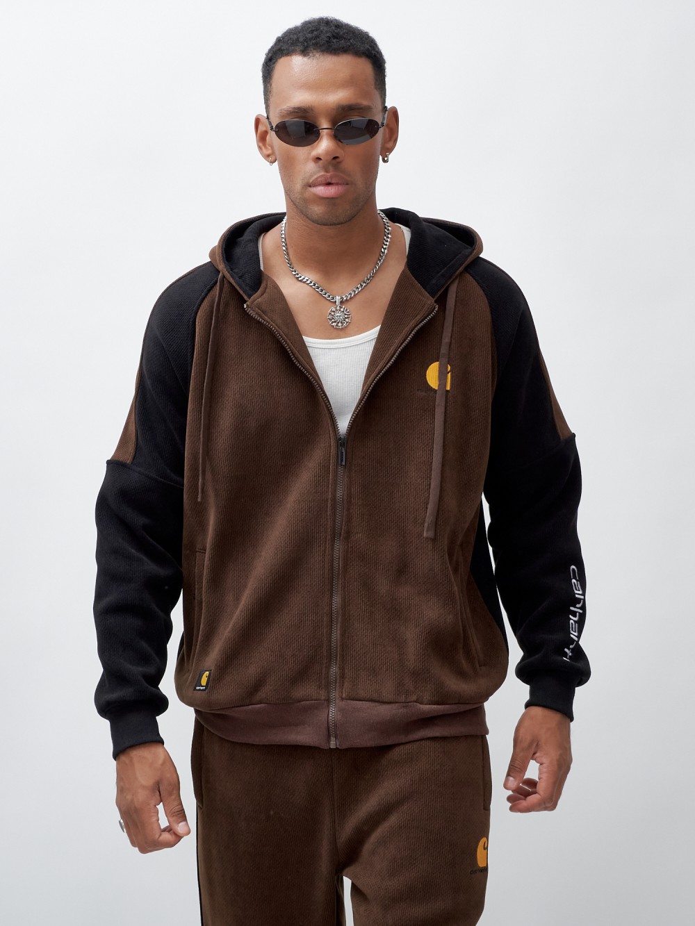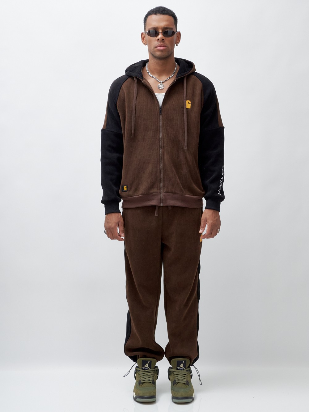 Олимпийка мужская демисезонная на флисе УЦЕНКА коричневого цвета 0894K