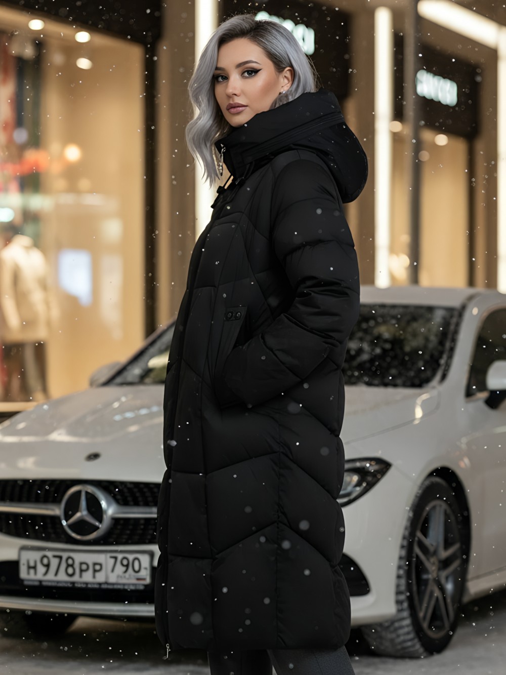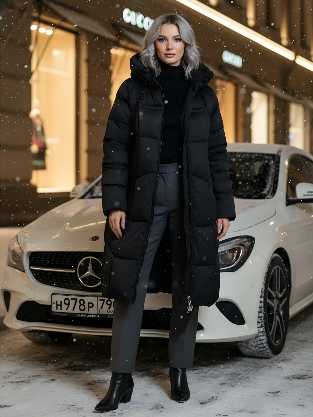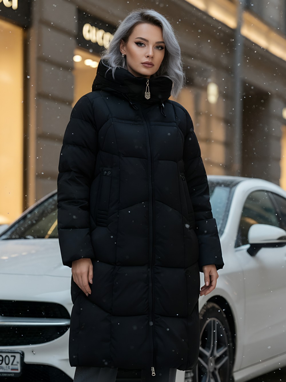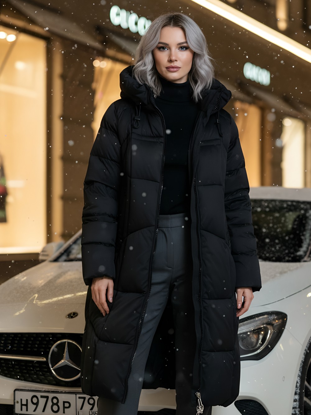 Надёжно защищает от холода, ветра и осадков. Идеален для зимней погоды, не требует головного убора.