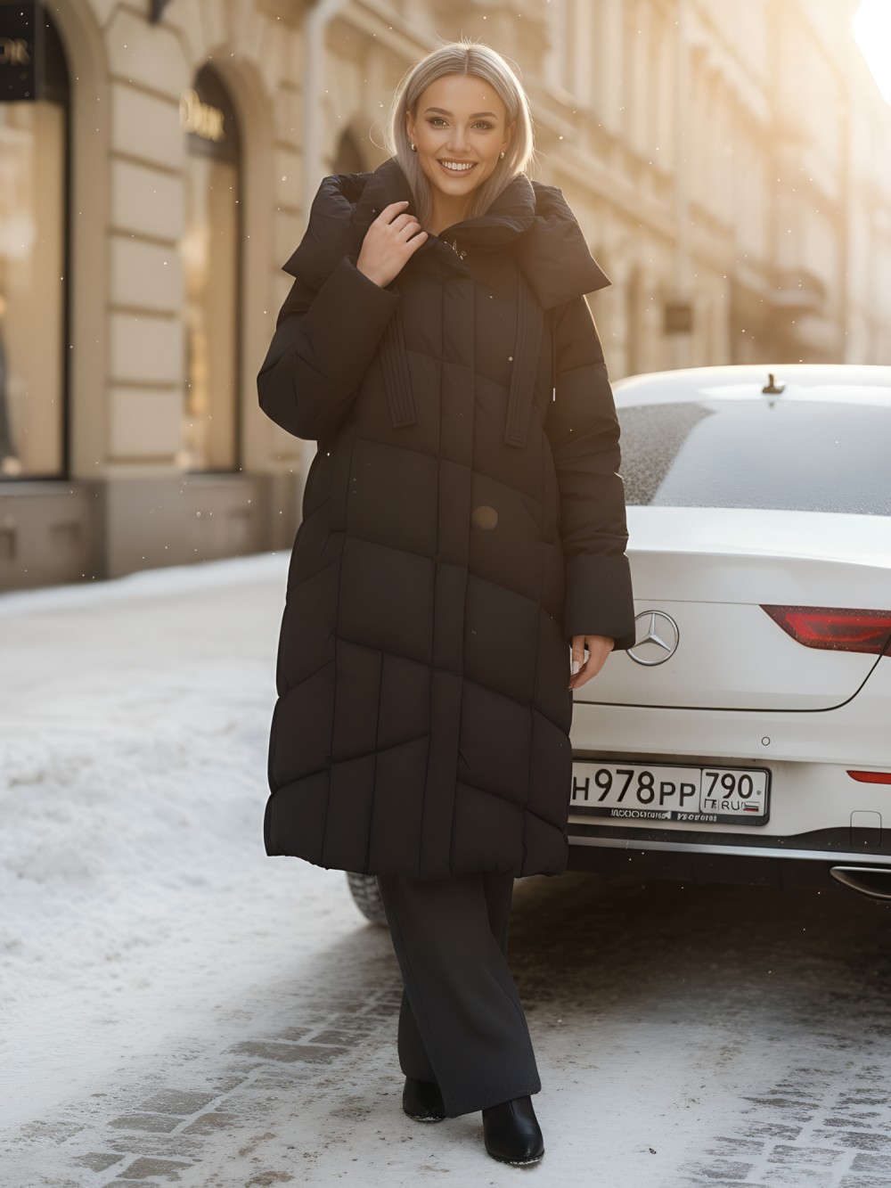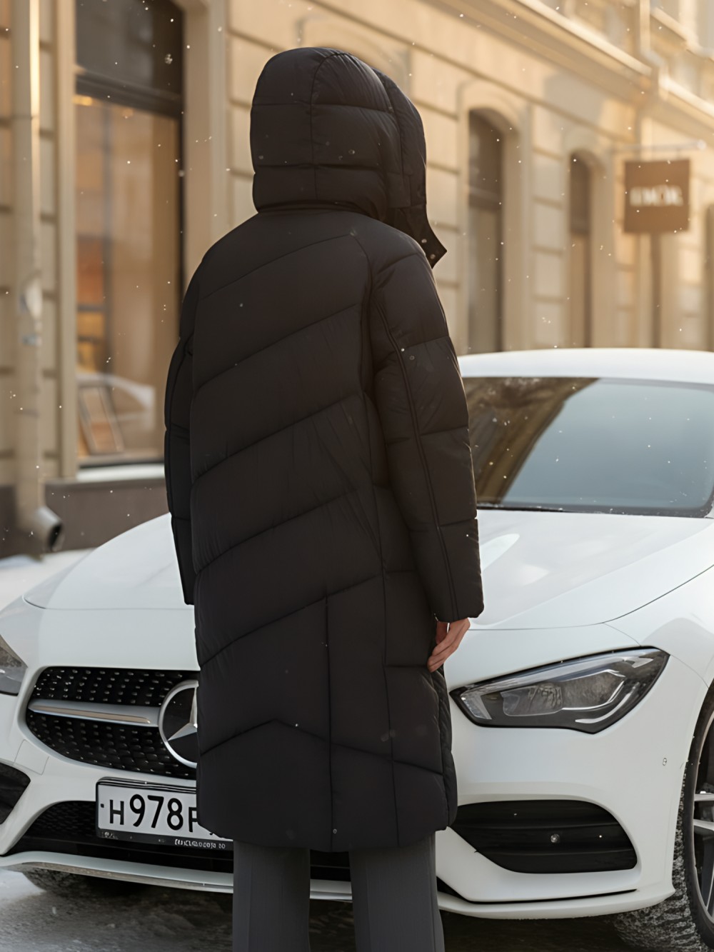 Надёжно защищает от холода, ветра и осадков. Идеален для зимней погоды, не требует головного убора.