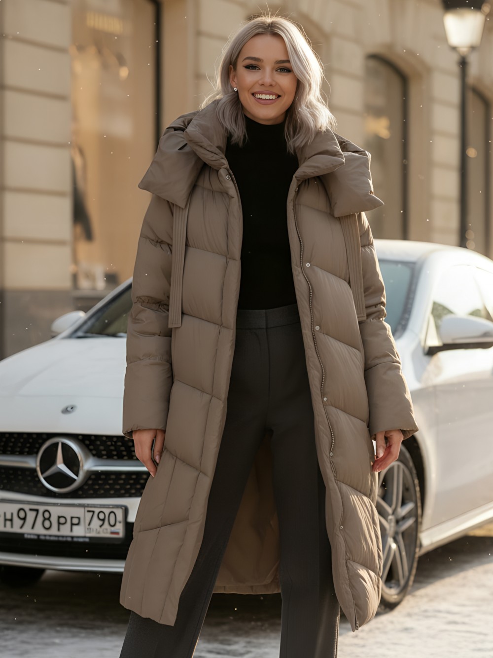 Пальто подчёркивает силуэт, удобно сидит по фигуре и не сковывает движений.