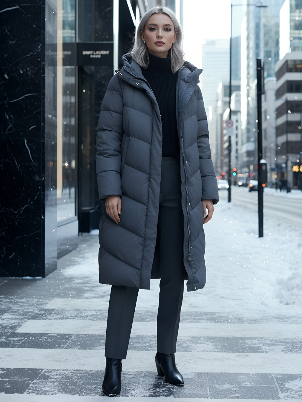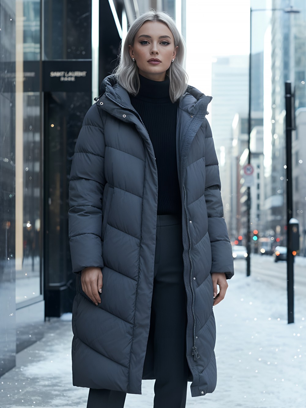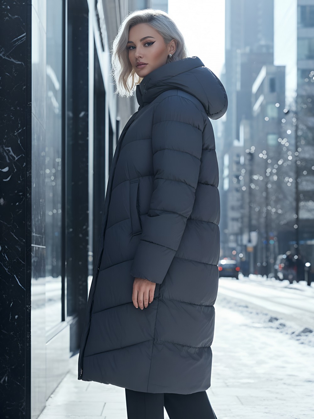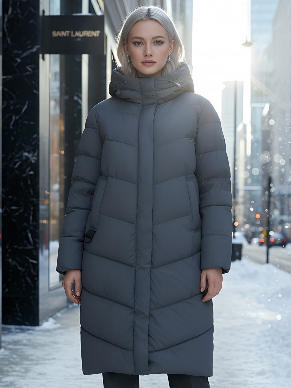 Надёжно защищает от холода, ветра и осадков. Идеален для зимней погоды, не требует головного убора.