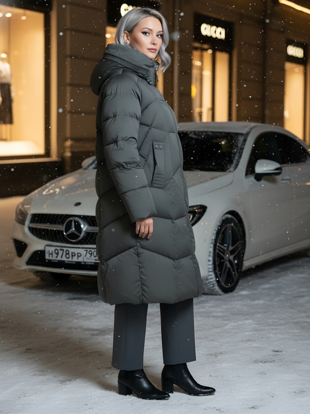 Надёжно защищает от холода, ветра и осадков. Идеален для зимней погоды, не требует головного убора.