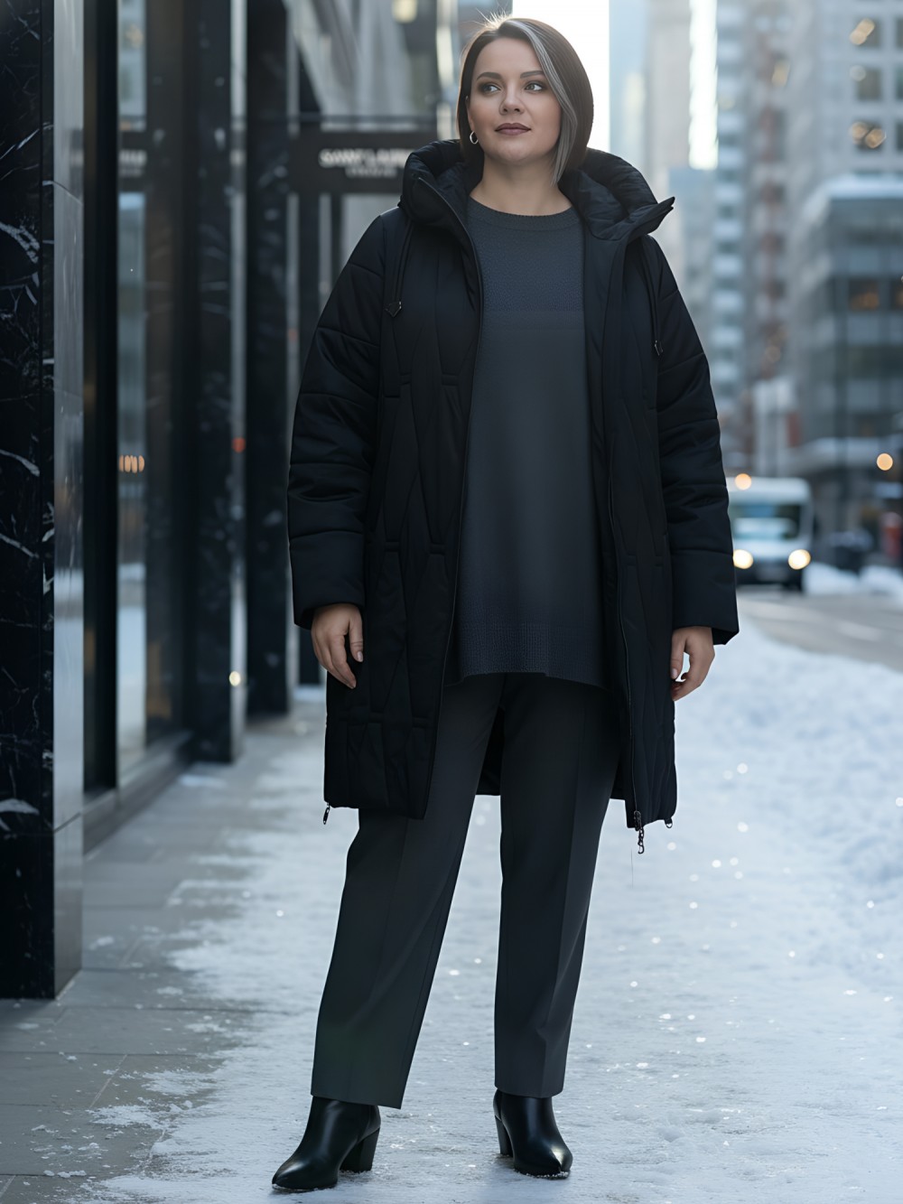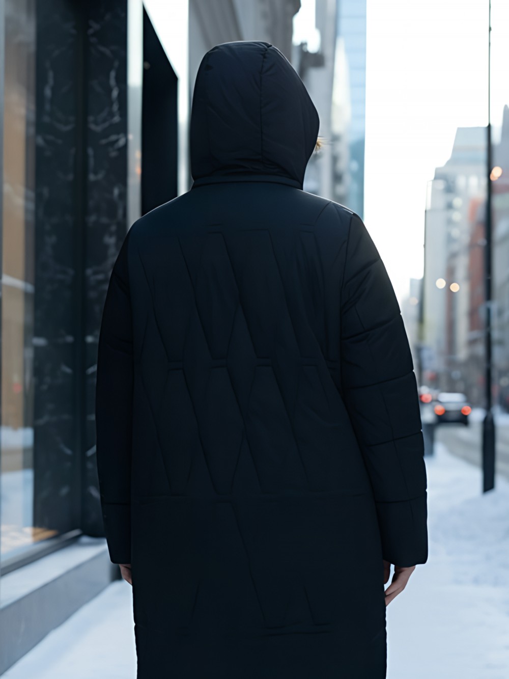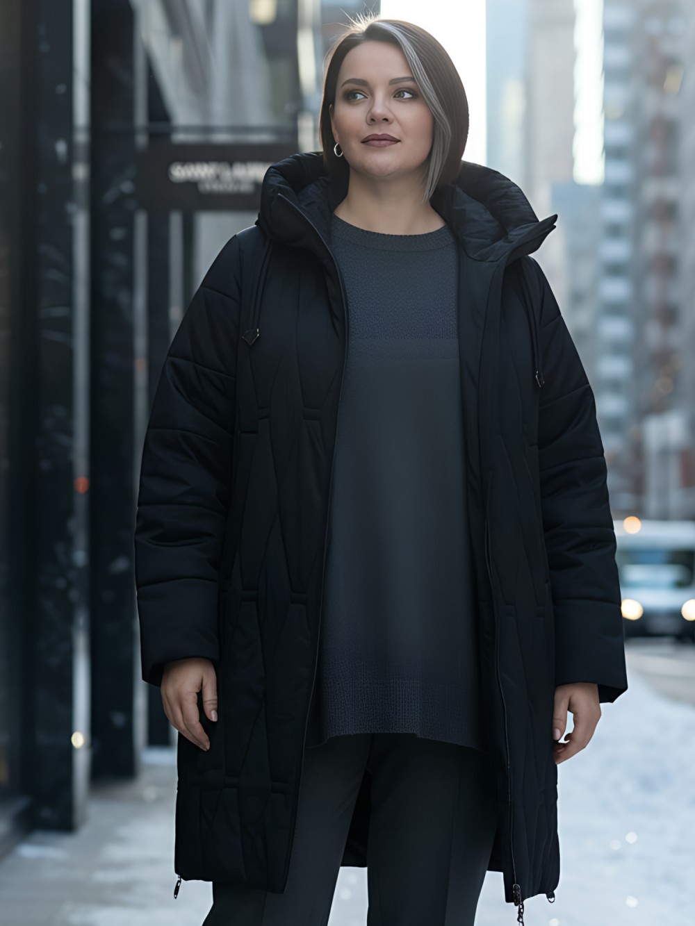 Надёжно защищает от холода, ветра и осадков. Идеален для зимней погоды, не требует головного убора.