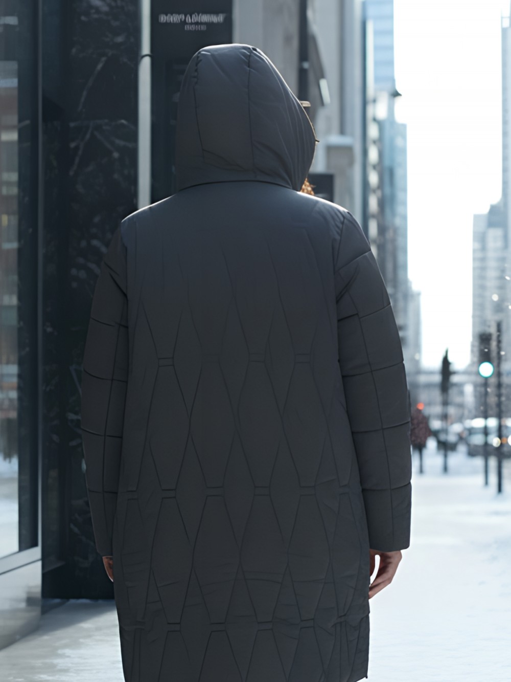 Надёжно защищает от холода, ветра и осадков. Идеален для зимней погоды, не требует головного убора.